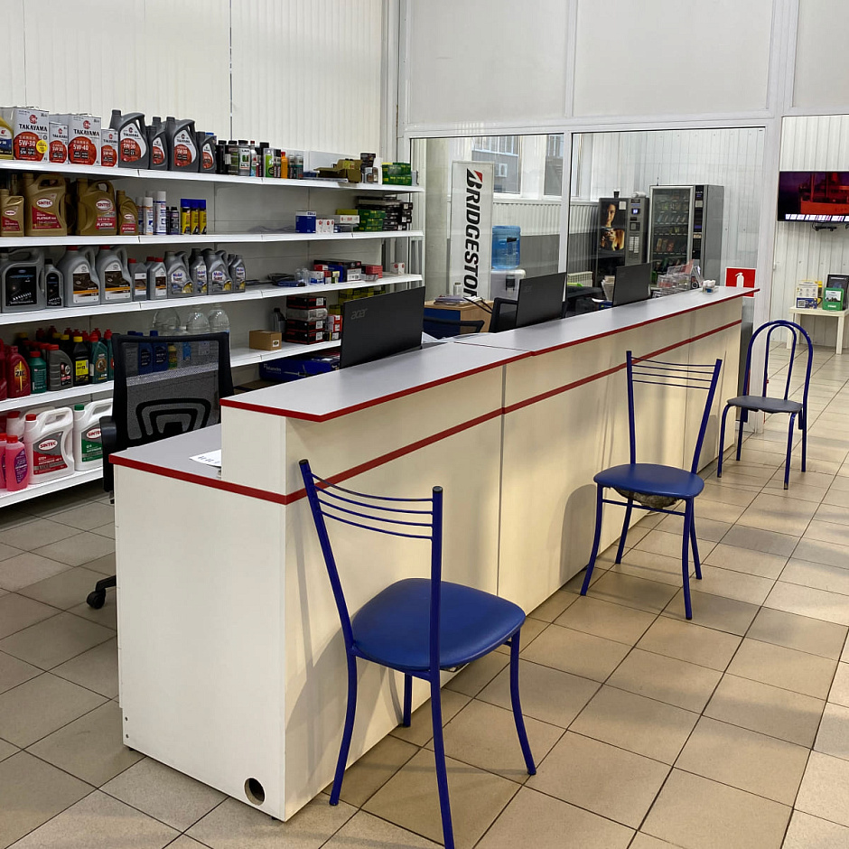 Приятно удивили работой: колеса поменяли оперативно, старые аккуратно упаковали и сложили в багажник. Видно, что мастера работают профессионально. Есть удобная зона ожидания с экраном - можно наблюдать за процессом.