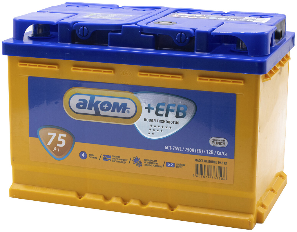 Аналоги аккумулятора AKOM +EFB 75 Ач от 750 А прямая полярность европейский тип корпуса