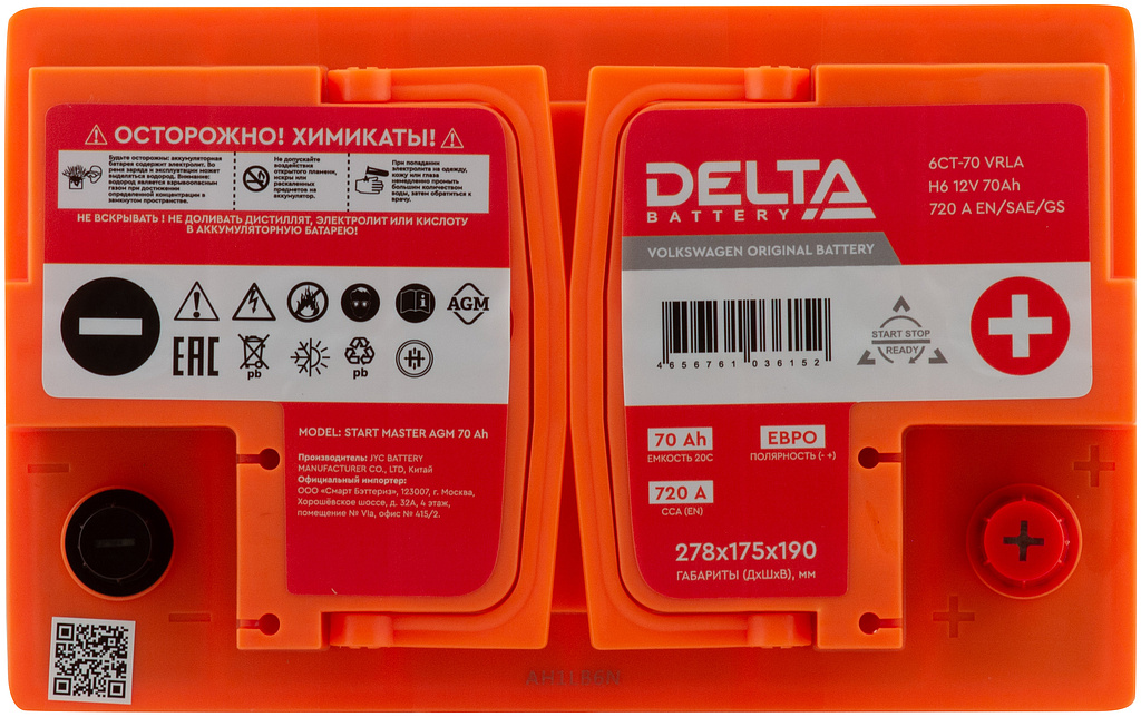 Аналоги аккумулятора DELTA START MASTER 70 Ач 720 А обратная полярность европейский тип корпуса