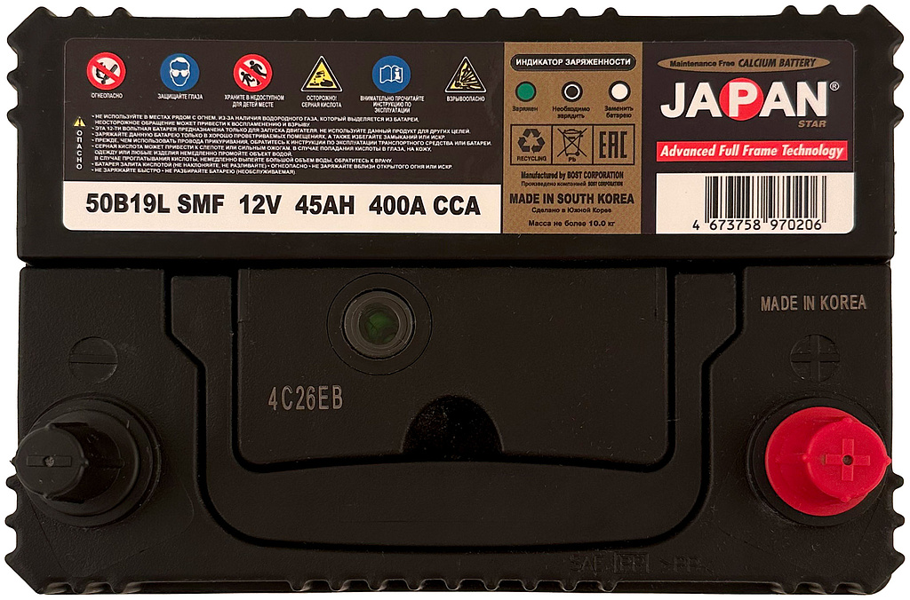 АКБ JAPAN STAR SMF — прочный и надёжный аккумулятор, который обеспечивает уверенный запуск двигателя и стабильную работу всех электрических систем автомобиля на протяжении многих лет.
