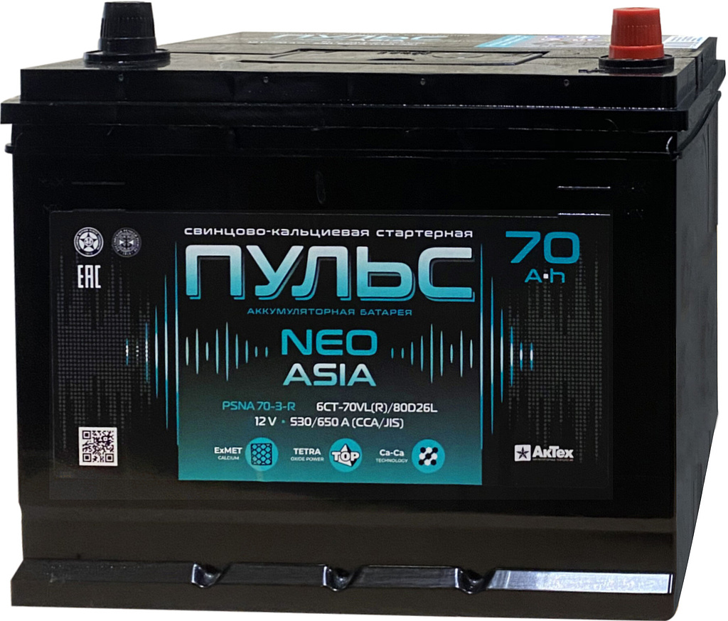 Аналоги аккумулятора ПУЛЬС NEO Азия 70 Ач от 530 А обратная полярность азиатский тип корпуса