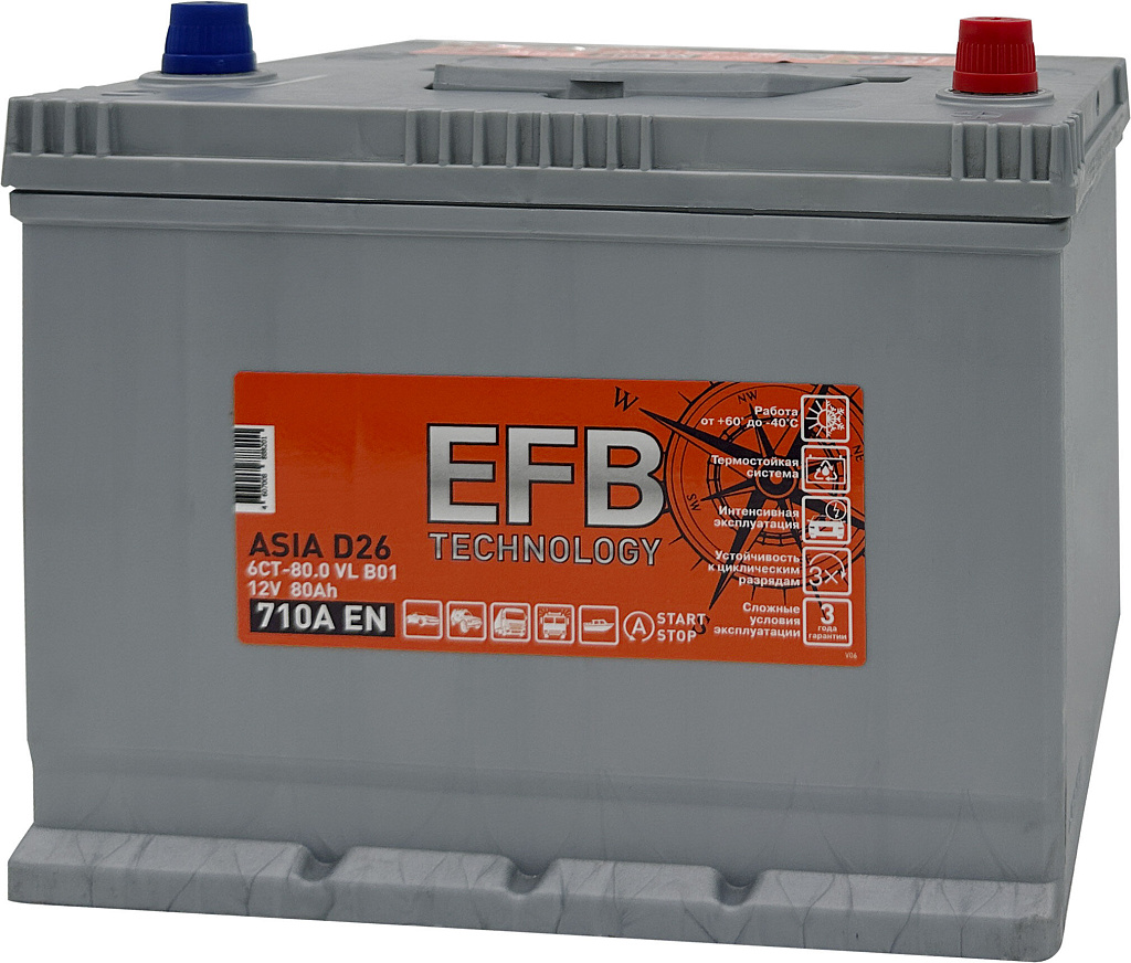 Аналоги аккумулятора TITAN Asia EFB 80 Ач 710 А обратная полярность азиатский тип корпуса