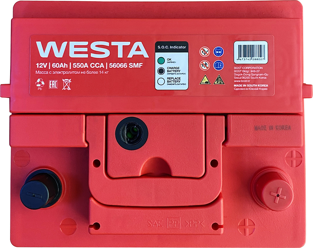 Аккумуляторы WESTA Korea SMF производятся на заводе BOST CORPORATION в Южной Корее с использованием новейших технологий и материалов премиум-класса. Эти батареи предназначены для большинства современных бензиновых и дизельных легковых автомобилей. Благодаря своей конструкции и технологии изготовления они обеспечивают надежное питание всех современных бортовых электроприборов.