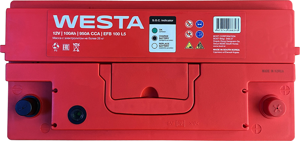 Описание аккумулятора WESTA Korea EFB 100 L5