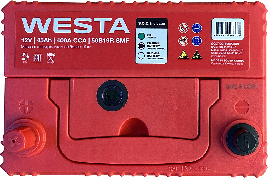 Аккумуляторы WESTA Korea SMF производятся на заводе BOST CORPORATION в Южной Корее с использованием новейших технологий и материалов премиум-класса. Эти батареи предназначены для большинства современных бензиновых и дизельных легковых автомобилей. Благодаря своей конструкции и технологии изготовления они обеспечивают надежное питание всех современных бортовых электроприборов.