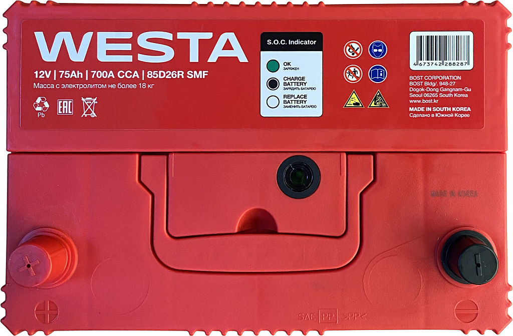 Аккумуляторы WESTA Korea SMF производятся на заводе BOST CORPORATION в Южной Корее с использованием новейших технологий и материалов премиум-класса. Эти батареи предназначены для большинства современных бензиновых и дизельных легковых автомобилей. Благодаря своей конструкции и технологии изготовления они обеспечивают надежное питание всех современных бортовых электроприборов.