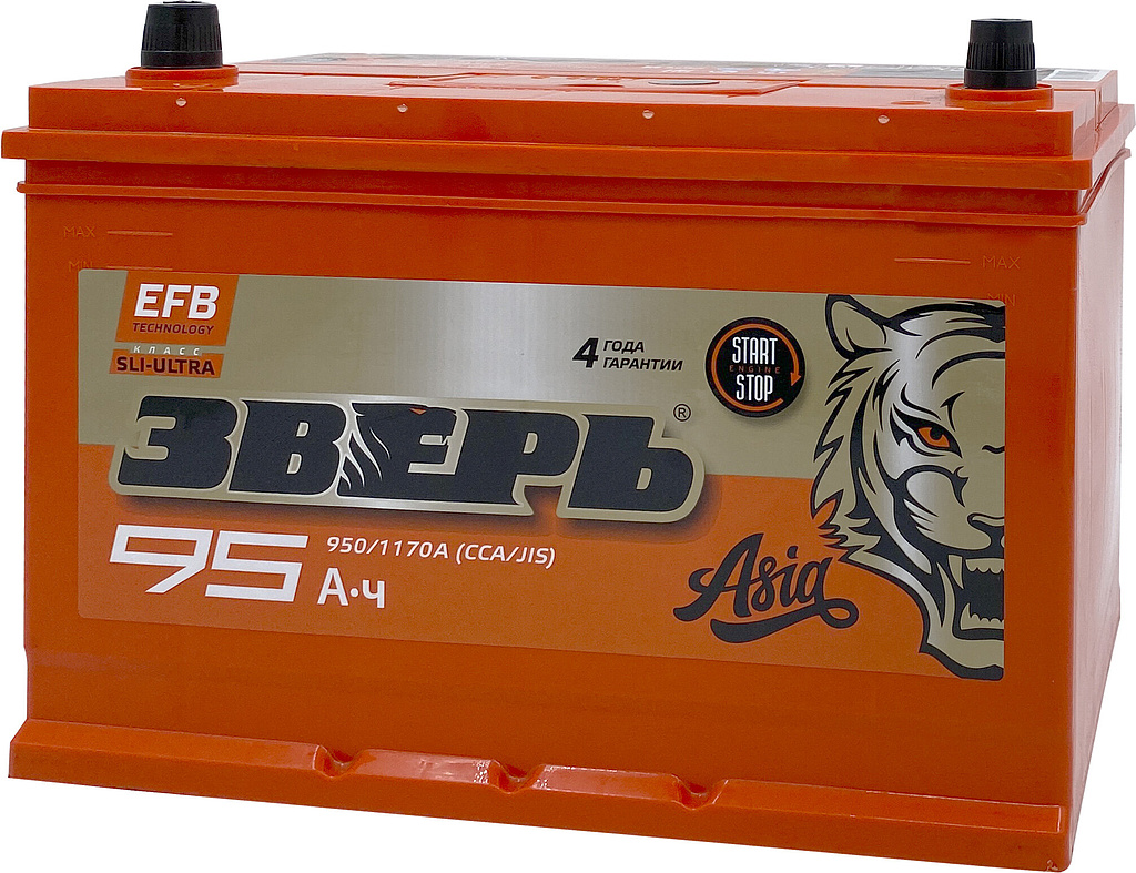 Аккумулятор ЗВЕРЬ Asia EFB 95 Ач 950 А прямая полярность
