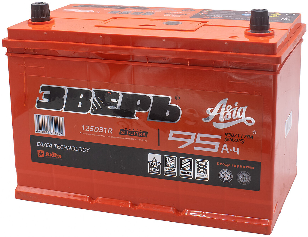Аналоги аккумулятора ЗВЕРЬ Asia 95 Ач от 930 А прямая полярность азиатский тип корпуса